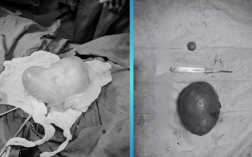 Trong quá trình xử lý, các bác sĩ ghi nhận tử cung của sản phụ bị biến dạng rõ rệt do khối u xơ lớn, tạo hình ảnh bất thường như trái tim, đây là một tình trạng hiếm gặp trong thực hành sản khoa. Đặc biệt, khối u xơ có kích thước lớn nằm ở vị trí bất lợi nên gây khó khăn cho việc tiếp cận và xử trí.